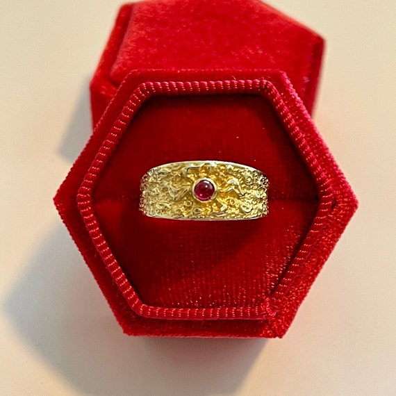 Created Ruby Ring Vintage 14k Yellow Gold Round Cabochon Cut Etsy